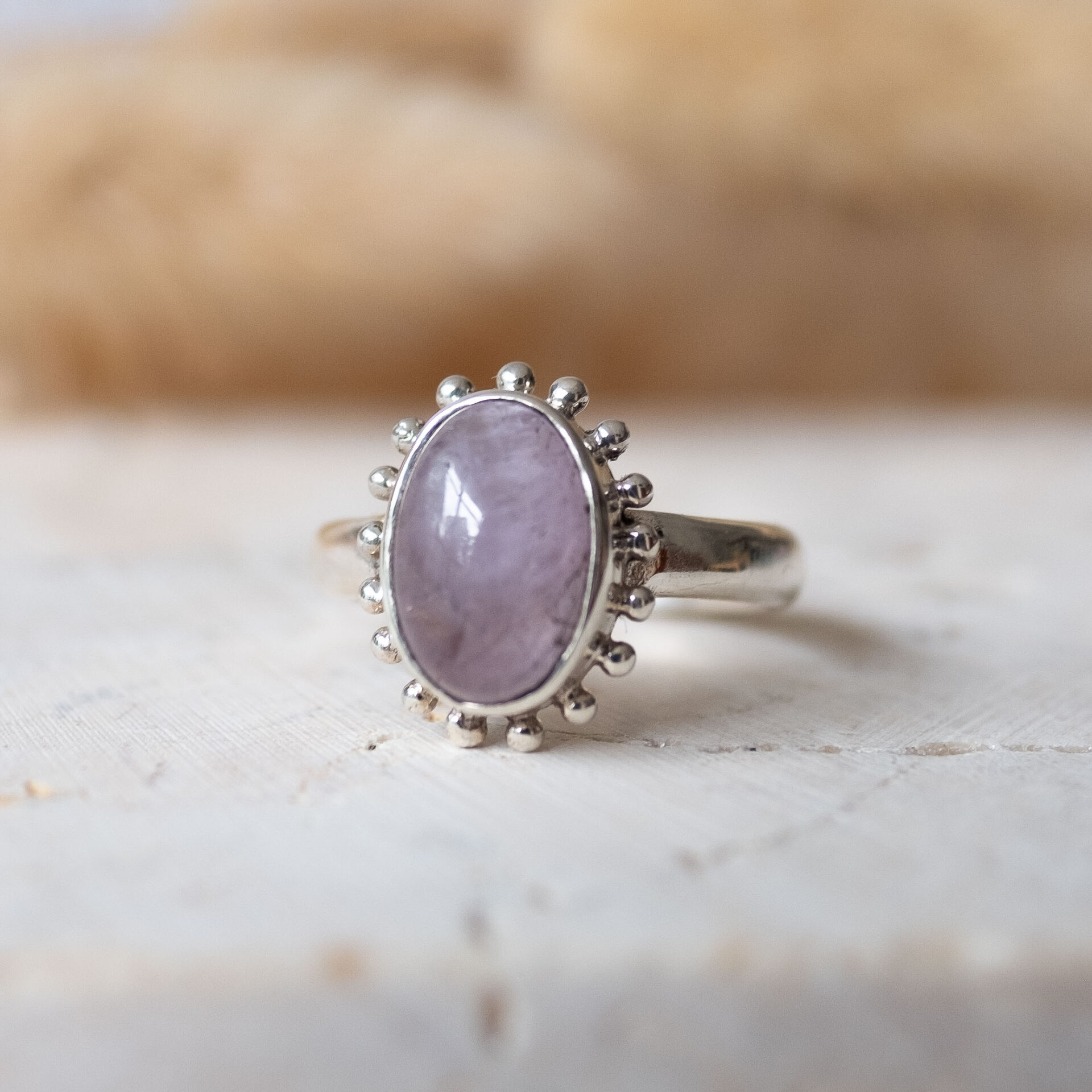 Ručně vyrobený prsten s Kunzitem je okouzlující šperk, který spojuje jemnost růžových tónů s hlubokou energií srdce. Působí žensky, něžně a zároveň velmi silně – ideální pro ženy, které chtějí nosit šperk s duší. Vstupte do světa jemnosti a harmonie s něžnými odstíny růžové a fialové, který v sobě nese klid, lásku a vnitřní rovnováhu.