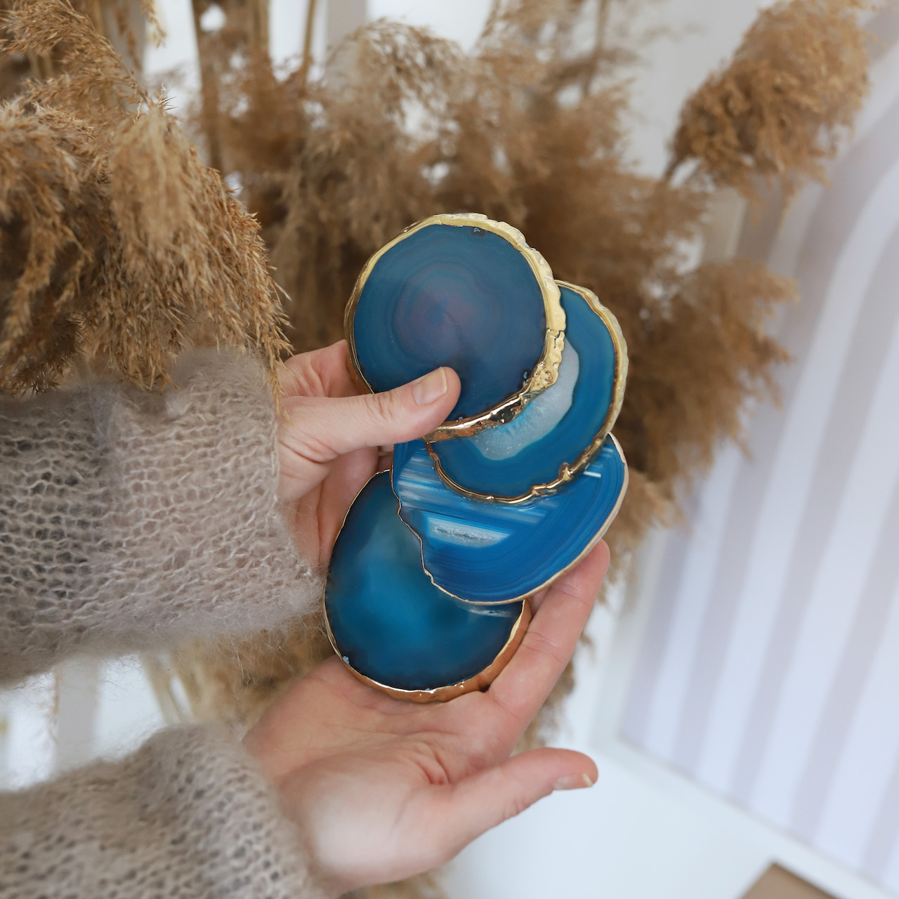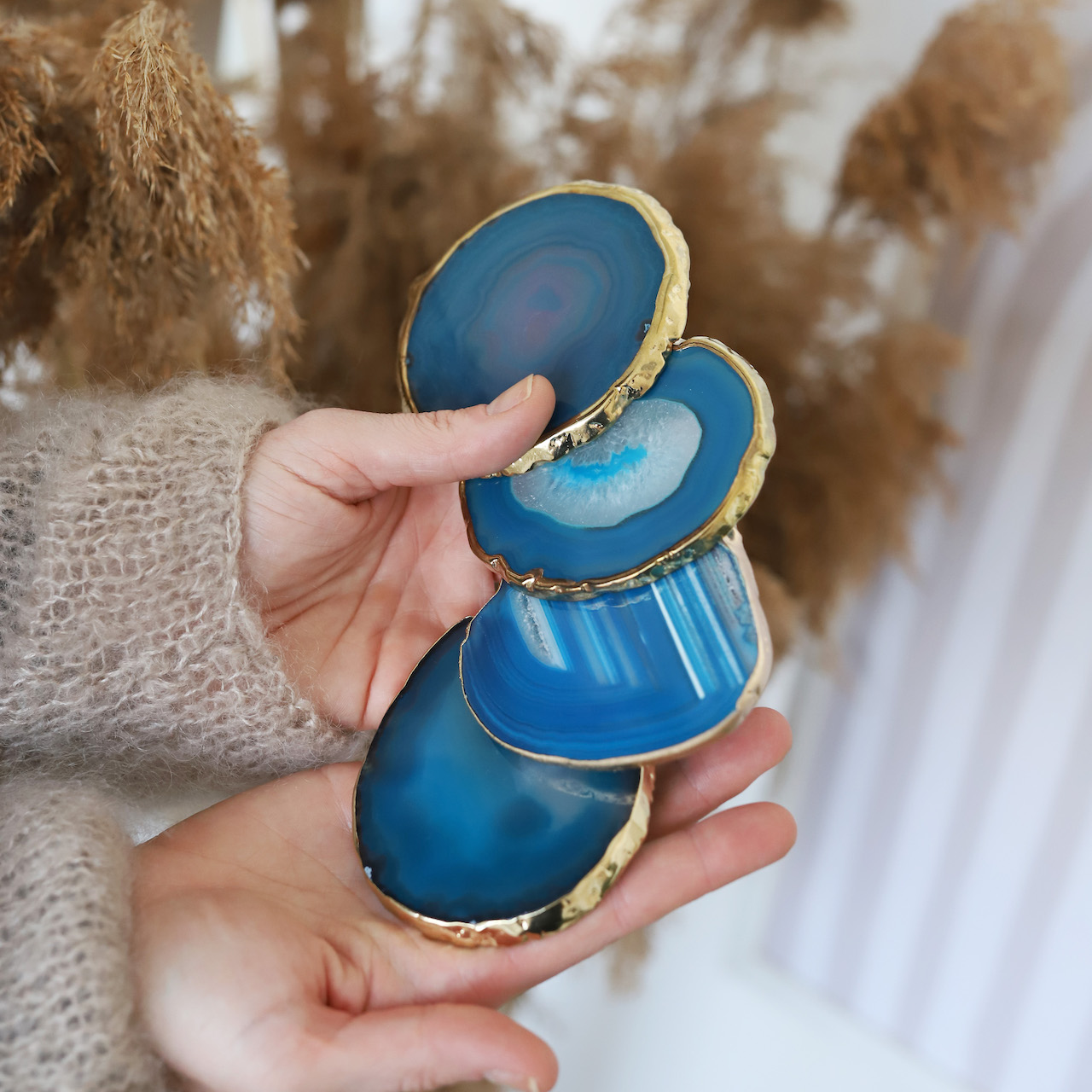 U všech našich produktů se snažíme propojit dokonalý design a precizní provedení. Stylové podtácky z barveného achátu okouzlí každého milovníka přírodních materiálů v domácnosti. Okouzlující podtácky neuniknou pozornosti a navíc pomohou k harmonizaci domova. Díky účinkům minerálů jsou ideální pro čas strávený s blízkými nebo ve dvou.