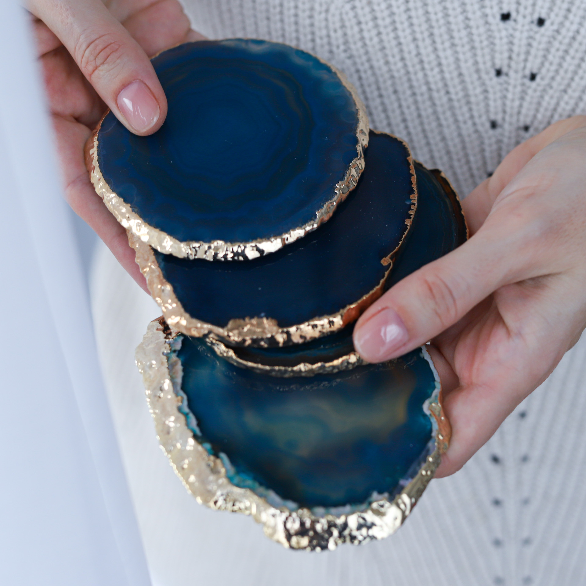 U všech našich produktů se snažíme propojit dokonalý design a precizní provedení. Stylové podtácky z barveného achátu okouzlí každého milovníka přírodních materiálů v domácnosti. Okouzlující podtácky neuniknou pozornosti a navíc pomohou k harmonizaci domova. Díky účinkům minerálů jsou ideální pro čas strávený s blízkými nebo ve dvou.