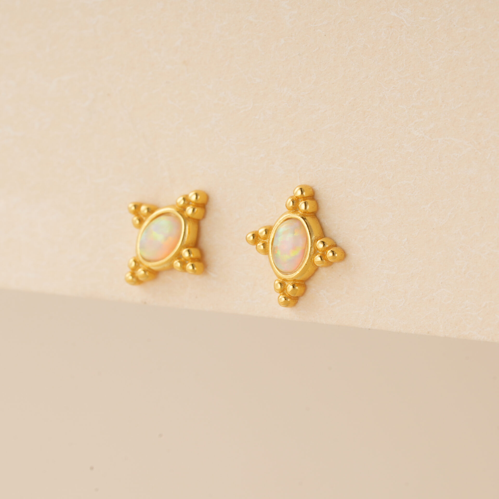 Pozlacené náušnice s Opálem. Dopřejte si šperk, který dokonale podtrhne vaši osobnost. Náušnice s opálem jsou minimalistické, pohodlné a přitom neodolatelně měňavé. Něžný opál září při každém pohybu a vytváří efekt tajemna, který přitáhne pozornost i v těch nejjemnějších detailech.