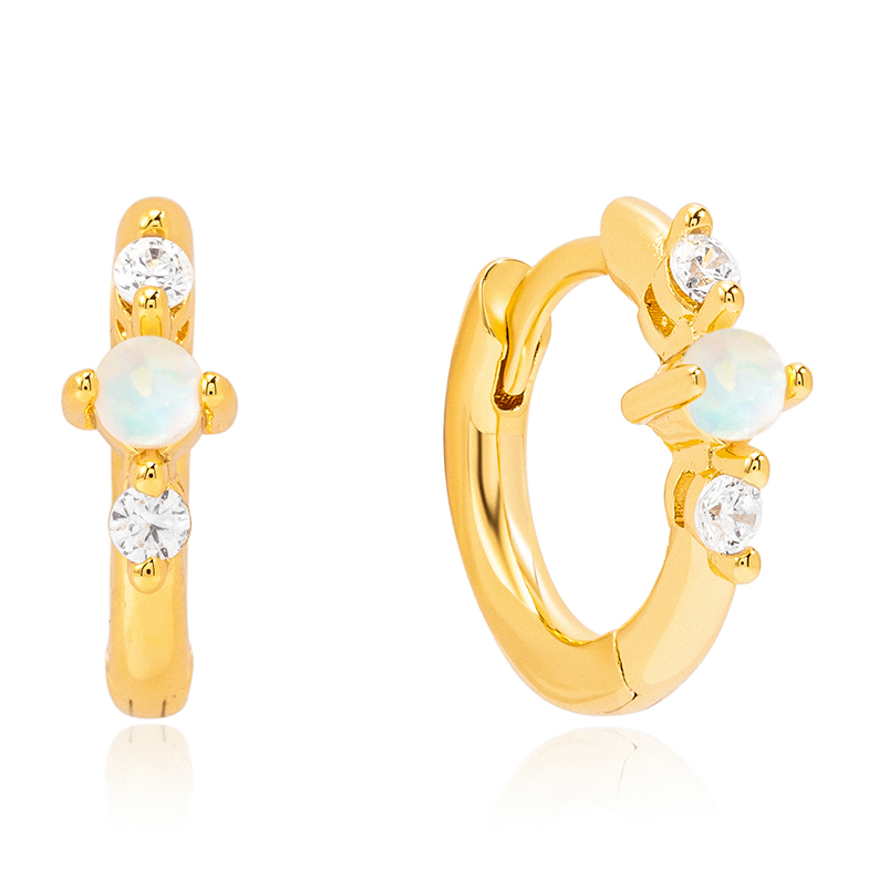 Originální pozlacené náušnice s opálem, které Vás nikdy nepřestanou bavit. Dodají Vašemu outfitu nádech boho stylu. S těmito náušnicemi se budete cítit naprosto jedinečně.