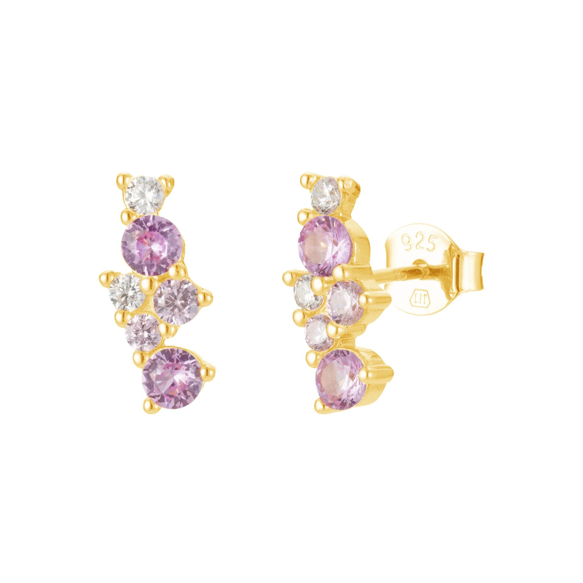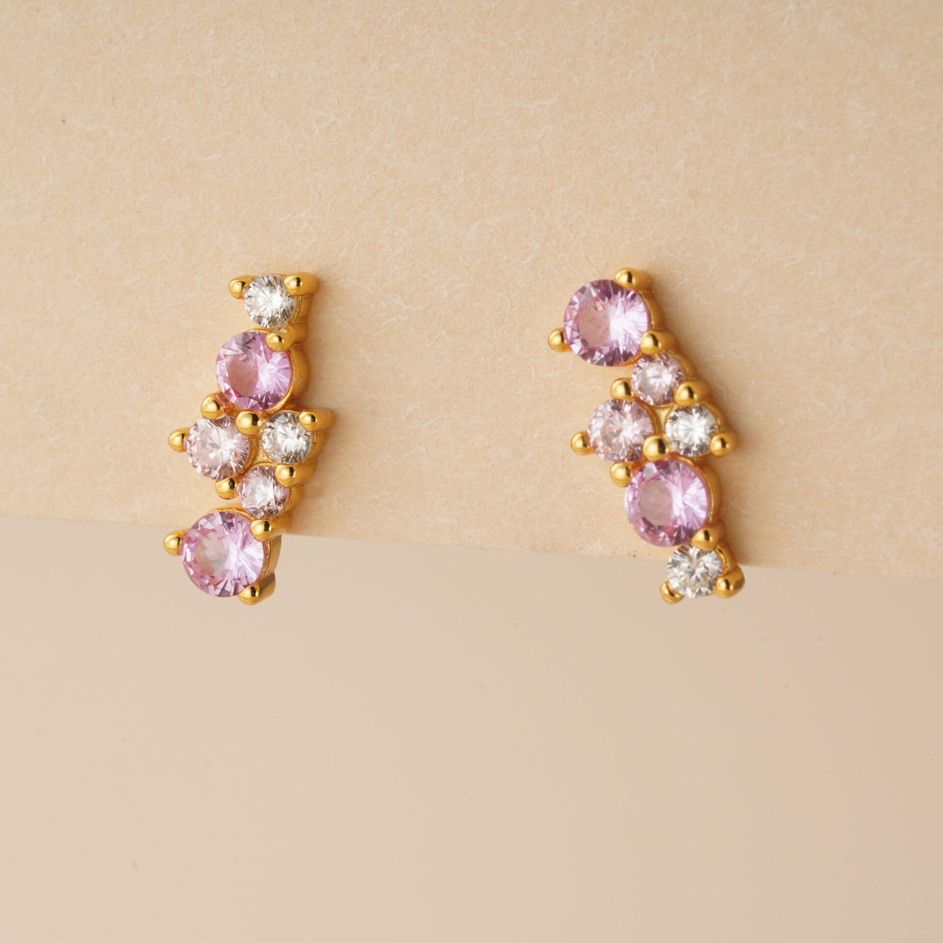 Originální  pozlacené náušnice s růžovým zirkonem, které Vás nikdy nepřestanou bavit. Dodají Vašemu outfitu nádech boho stylu. S těmito náušnicemi se budete cítit naprosto jedinečně.