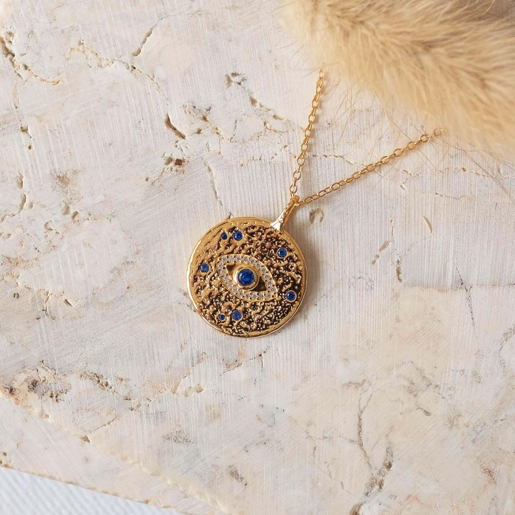 Pozlacený náhrdelník Boží oko je jedinečný šperk, který kombinuje eleganci a ochranu. Díky kvalitnímu pozlacení si zachovává svůj lesk a krásu po dlouhou dobu. Ideální volba pro každodenní nošení nebo jako výjimečný dárek pro vaše blízké.