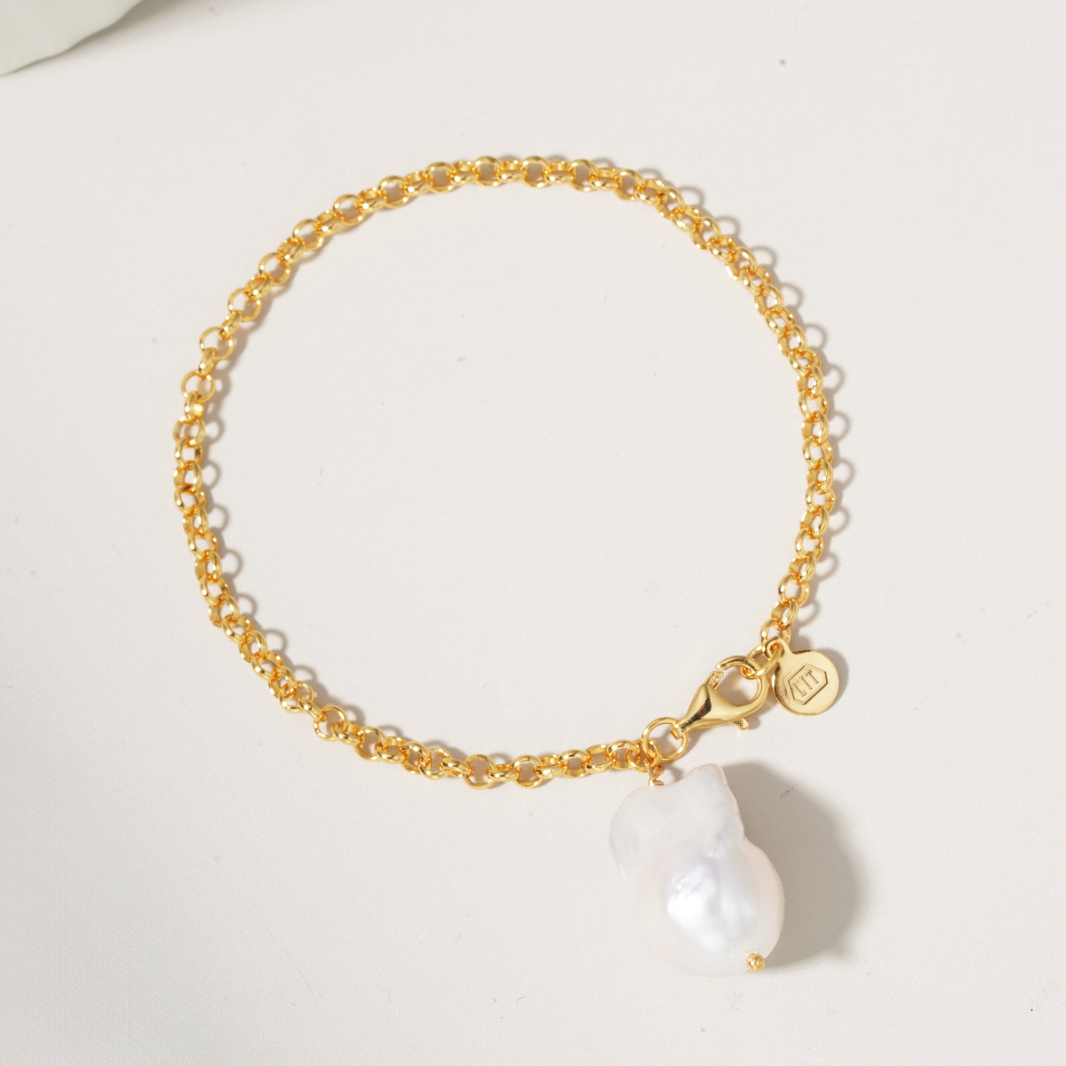 ✨ Náramek s perlou baroque – jedinečná perla, která nikdy nebude stejná. Vdechněte svému stylu eleganci a jemný luxus s Náramkem s perlou Baroque na originálním řetízku rollo. Každá barokní perla je naprostý originál – svým tvarem, leskem i kresbou. A právě tato nepravidelnost dává šperku nezaměnitelný charakter, díky němuž vynikne na každém zápěstí.