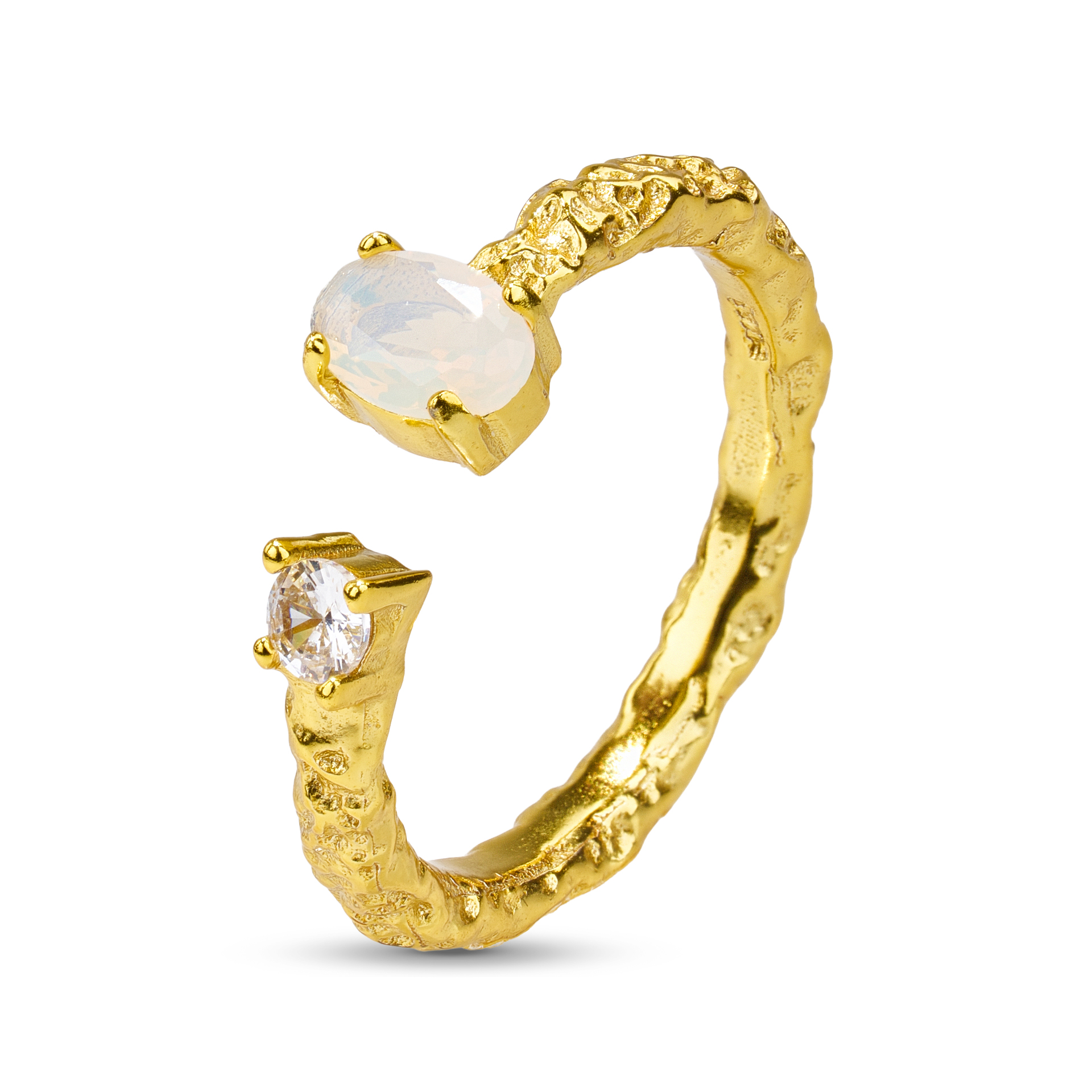 Překrásný tepaný prsten s Opálem, který oslavuje Vaši krásu a jedinečnost. Ideální na každou příležitost. Ať už vyrazíte na večírek nebo do práce, s tímto prstýnkem se budete cítit stylově v každém okamžiku.