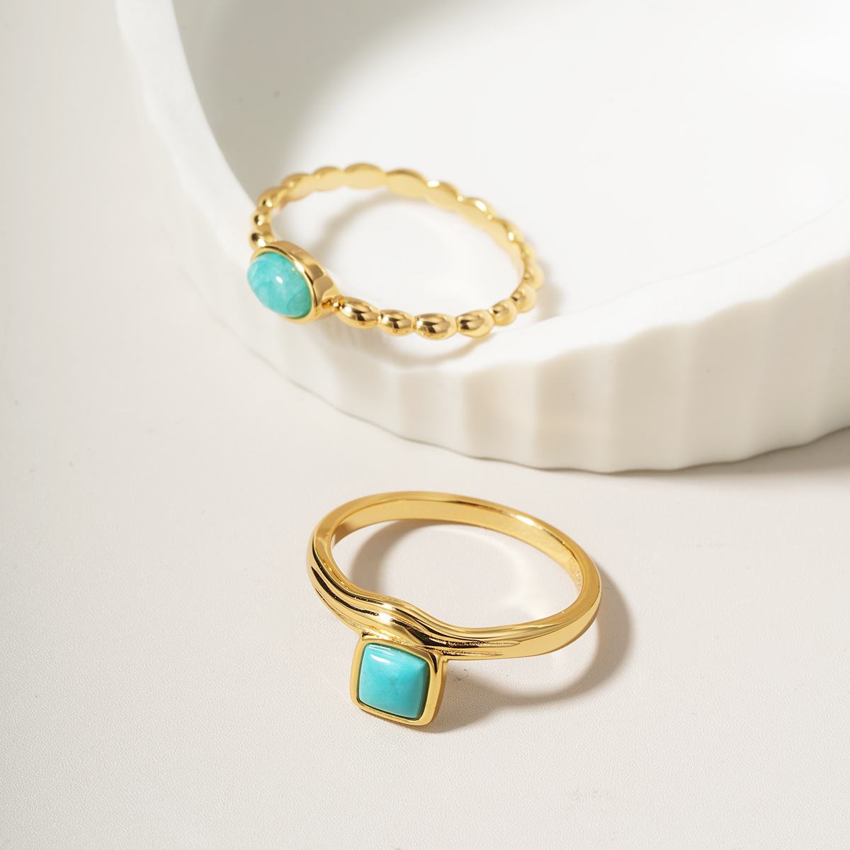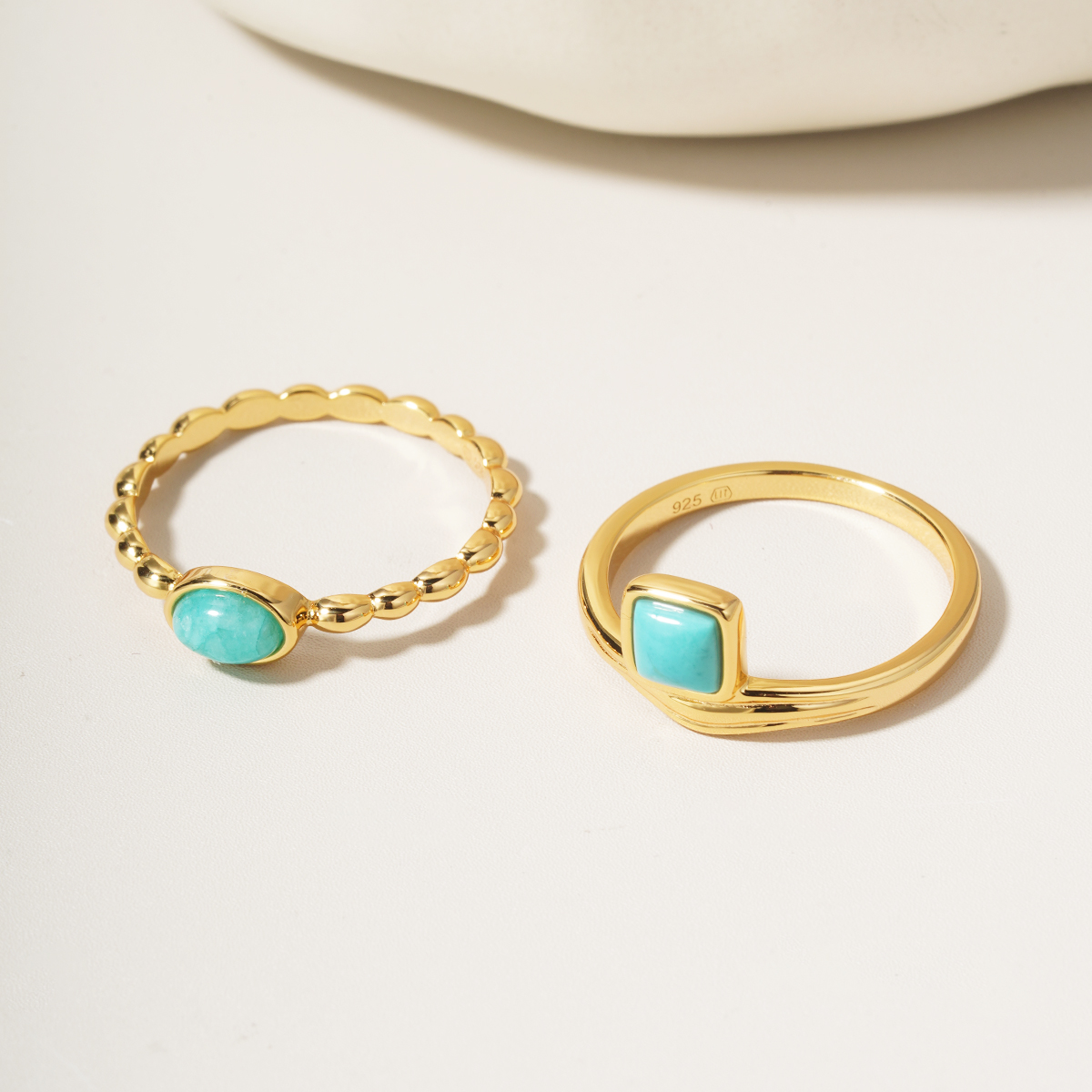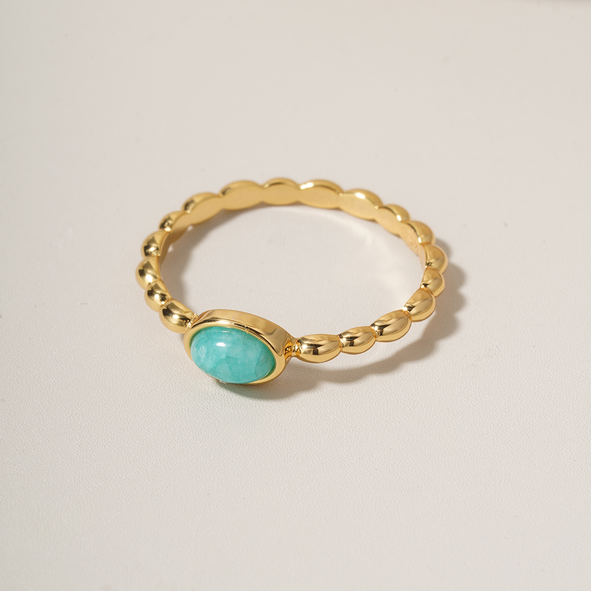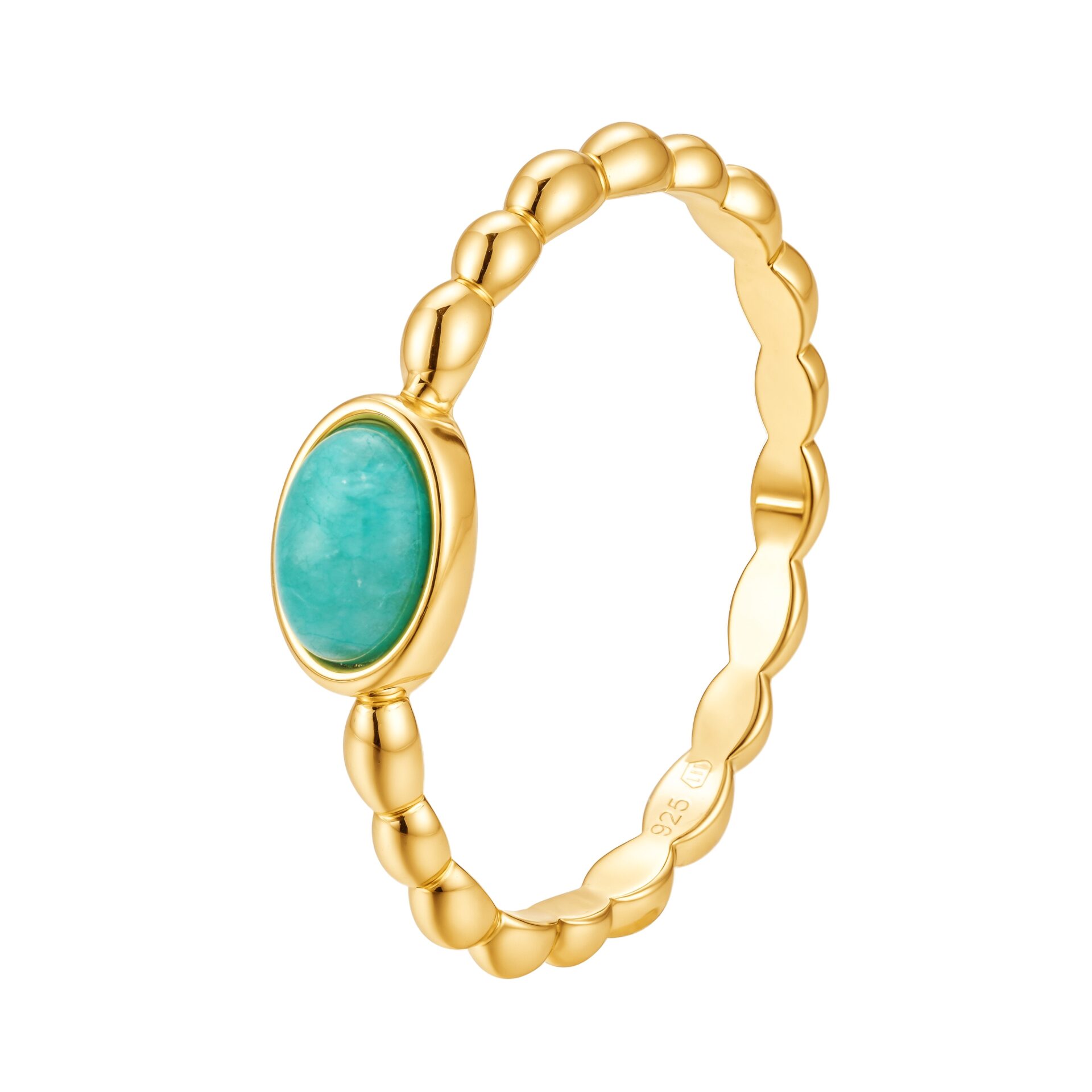 Dodejte svému stylu dotek svěžesti a jemné elegance s pozlaceným prstenem zdobeným přírodním Amazonitem — minerálem, který okouzlí svými tyrkysově–zelenými odstíny a harmonickou energií.