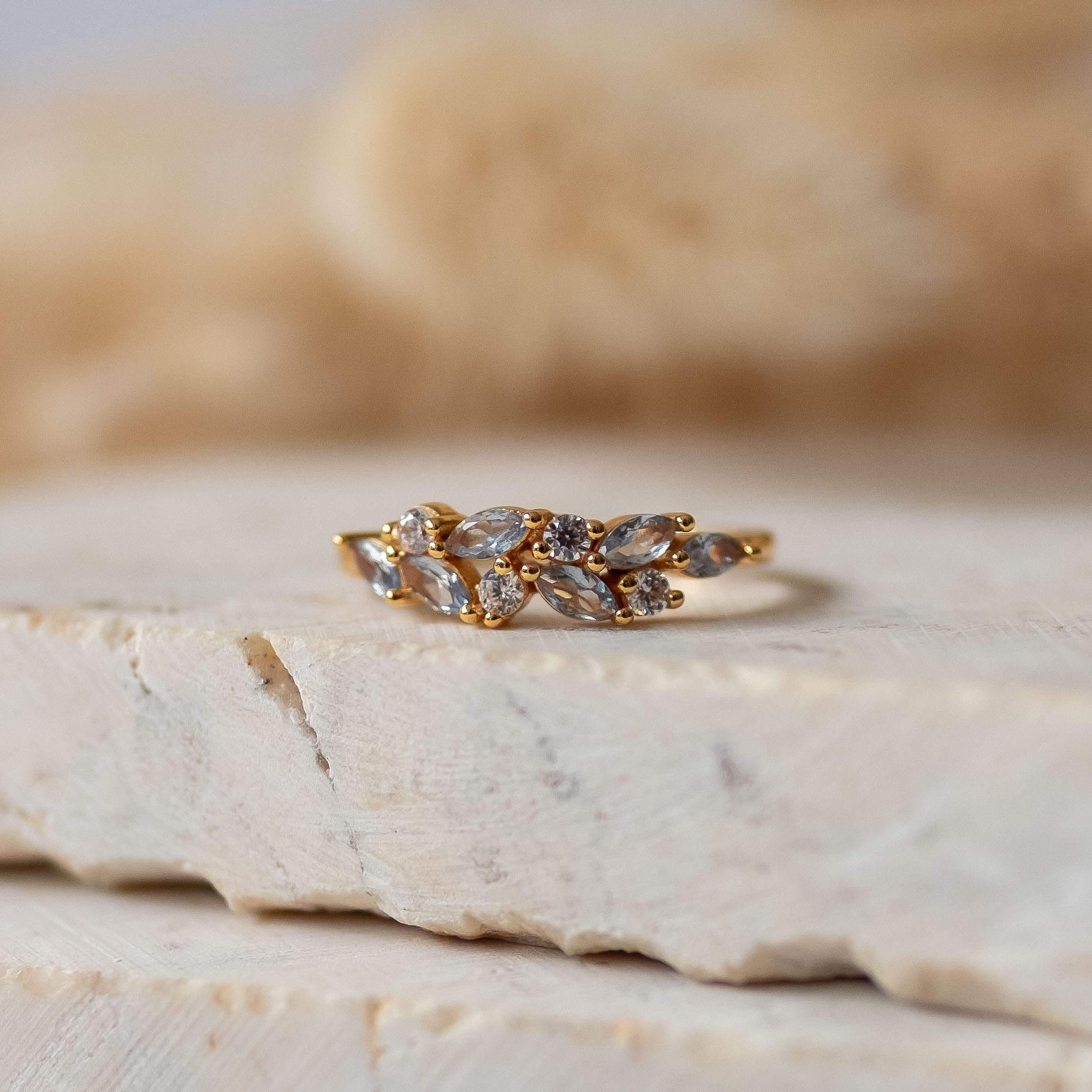 Pozlacený prsten s Topazem Blue. Ozdobte své prsty tímto působivým prstenem s modrým topazem a přidejte do své sbírky kousek nadčasové elegance!