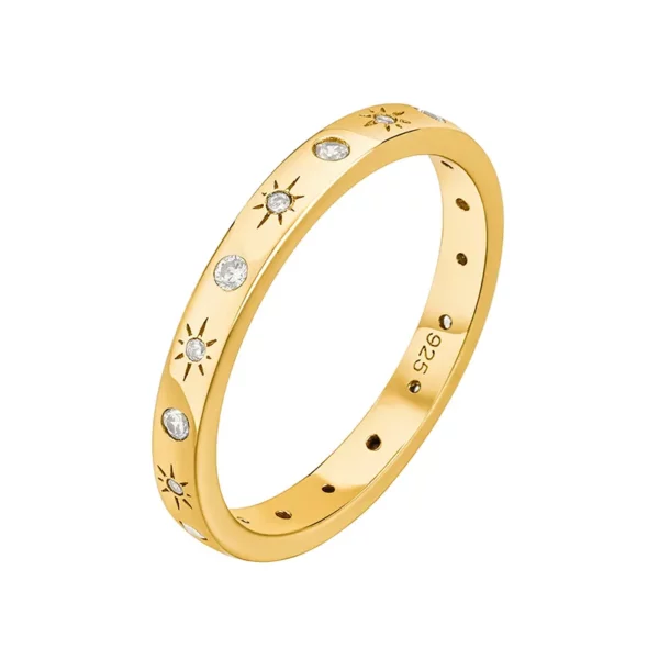Designový ručně vyrobený pozlacený prsten Star, který oslavuje Vaši krásu a jedinečnost. Ideální na každou příležitost. Ať už vyrazíte na večírek nebo do práce, s tímto prstýnkem pozlaceným žlutým zlatem se budete cítit stylově v každém okamžiku. Originální kousek ozdobený zirkony podtrhuje Vaši osobnost a navíc se dá skvěle kombinovat s dalšími prsteny z naší pozlacené kolekce.